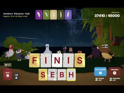 A word game about migrating birds - inspired by Wordle and Balatro. Play cards, build your deck, trigger combos and guide your flock. From John August (Corpse Bride) and Corey Martin (Bonfire Peaks).