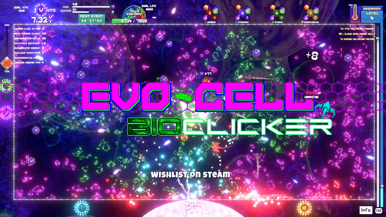 Evo-Cell is the next level of an organic cell automaton simulator, inspired by the classic 'Game of Life' by Conway. Embark on an incremental ‘Idle’ adventure where the goal is to colonize and evolve a new species.