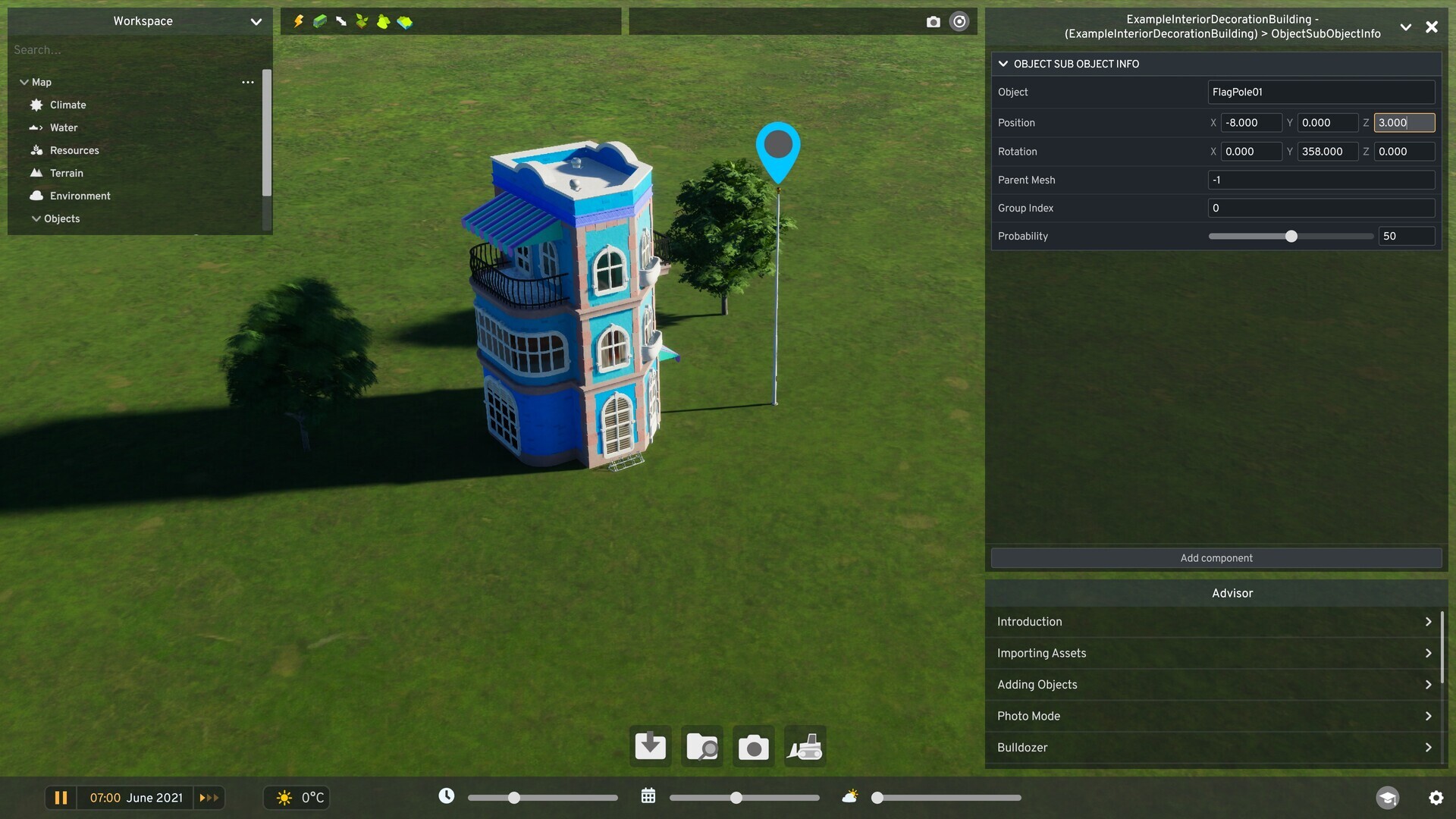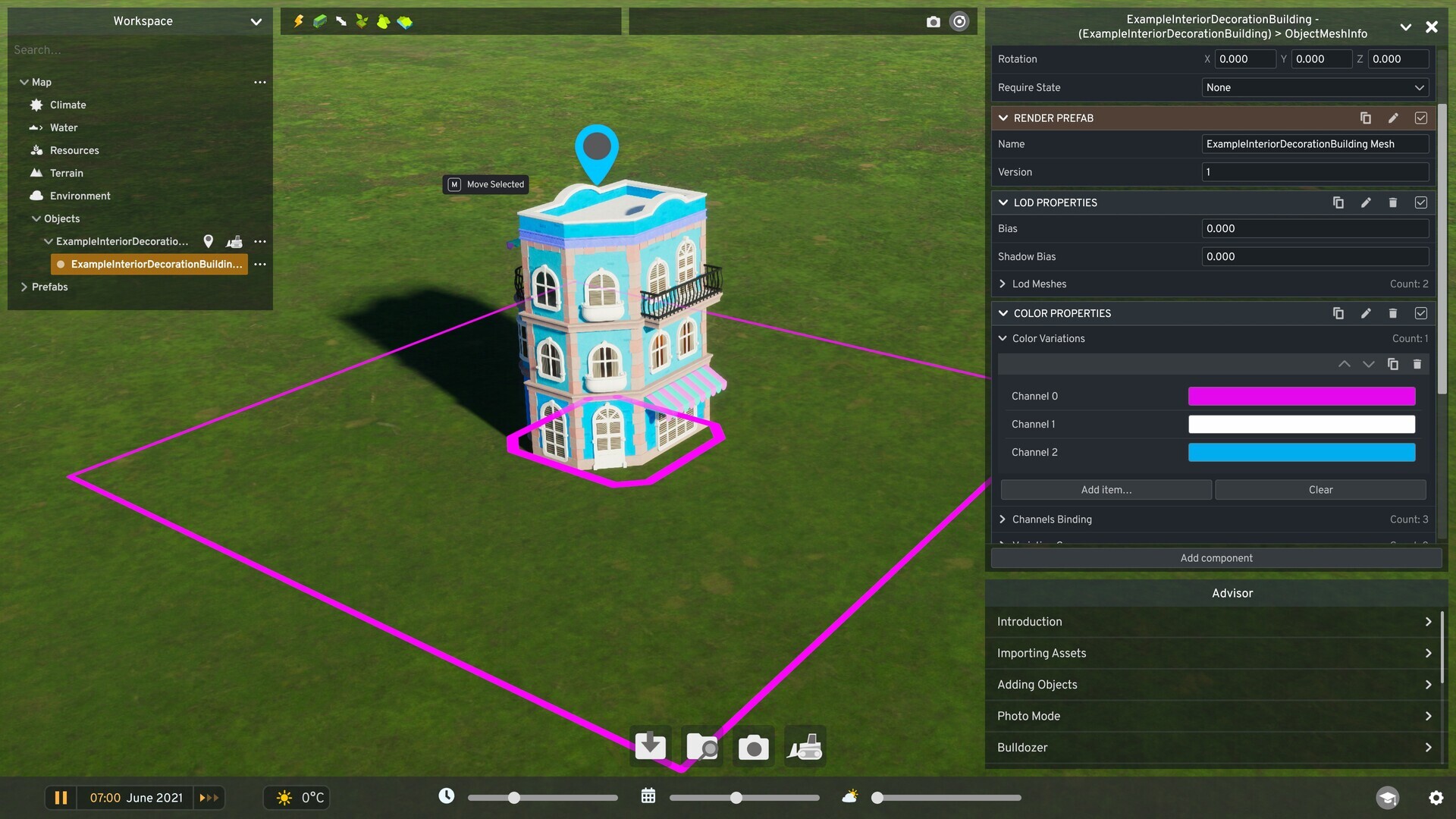 Once imported, you can place the new asset in the scene to start customizing it.