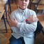 stary go smaruje klejem