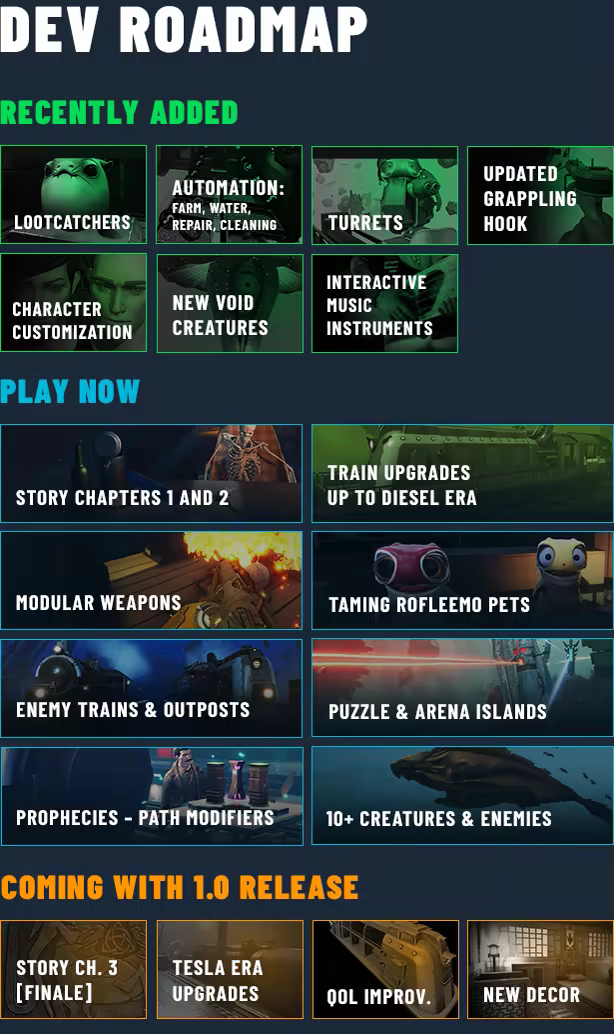 „In addition to bug fixes and balance tweaks, we plan to enhance the game's core mechanics based on player feedback, add new story chapters with new locations, quests, enemies, and mechanics, and introduce additional side content to make Voidtrain more immersive, engaging, and diverse.”