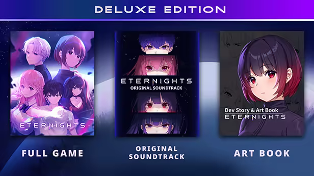 Fordyb dig i Eternights-universet med Deluxe Edition, der indeholder grundspillet, den officielle digitale grafikbog, dybdegående indsigt i udviklingen af Eternights samt det officielle digitale soundtrack med over 100 numre komponeret af Spencer Bambrick.