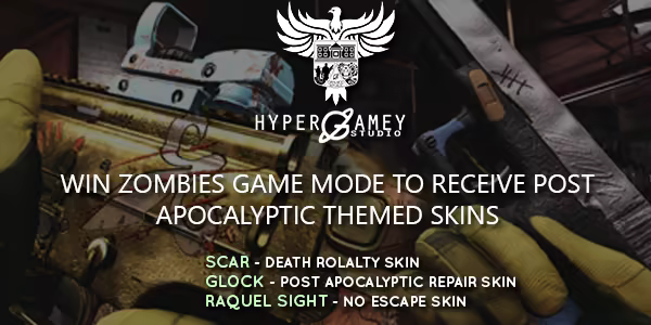 Hey there again, folks! In case you weren't aware, the zombies game mode is somewhat a small escape story that can be completed, it's not endless. The players that manage to escape the haunted hotel will get 3 post apocalyptic themed skins, those being the following: