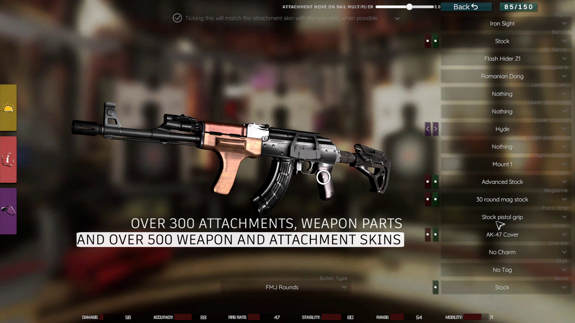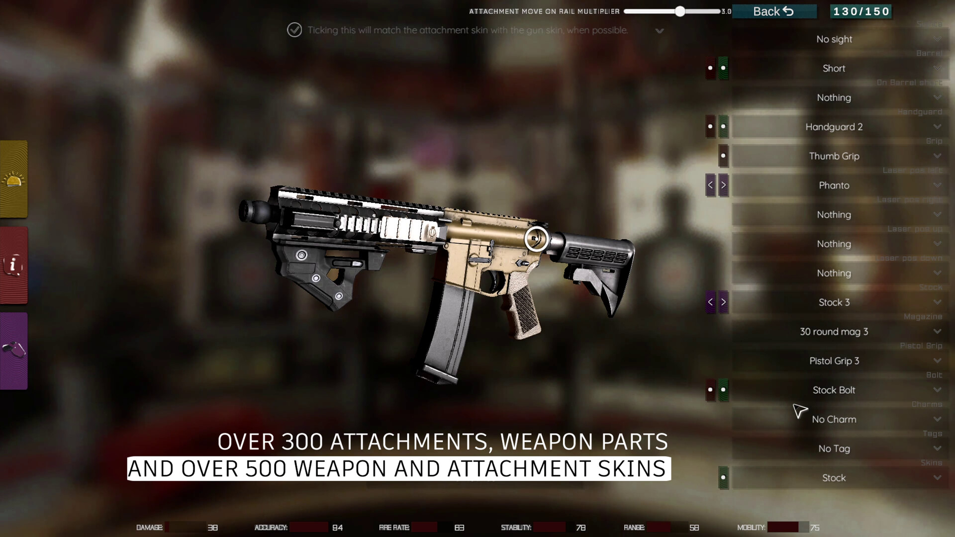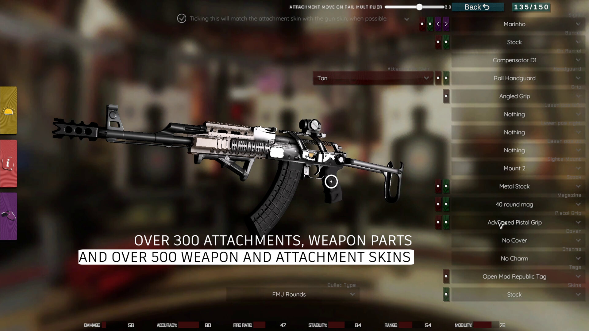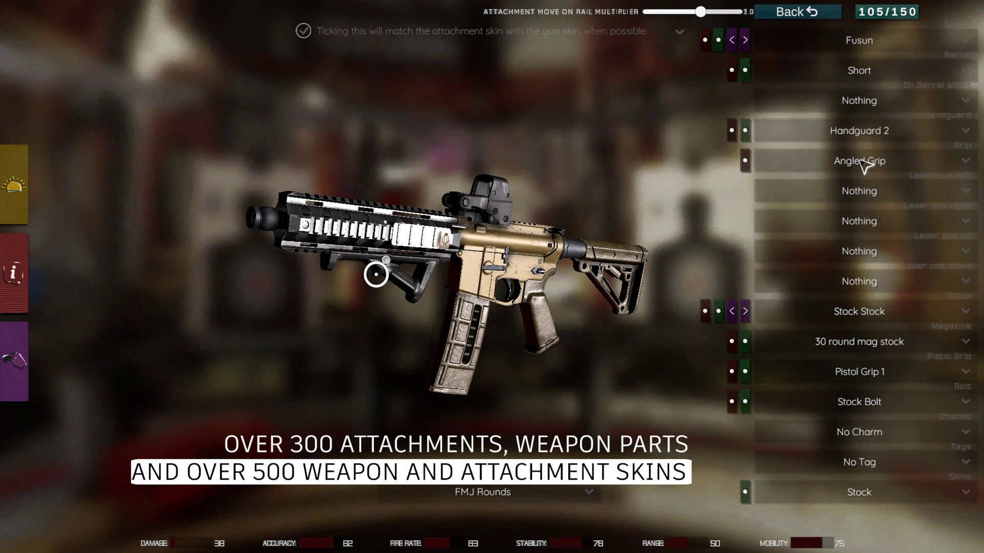 Open Mod has been built with scaling in mind, meaning that adding more content of all kinds into the game such as weapon skins, attachment skins, charms, tags, animations, even weaponery or custom maps, can be added in a matter of hours into the main game. Also our latest implementation of Unity's Addressables system allows us to have as much content into the game as we want, without having to load it all at the start of the game, but only when needed. With those said, we strongly believe we could add more content in time and at some point we could become the game with most customizability. We've already got 500+ skins available for a large variety of weapons and attachments, and 300+ attachments to choose from, plus individual weapon parts. Building content on top of this will eventually result in a highly populated with content game.