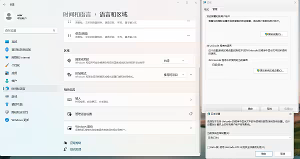 ->更改系统区域设置->选择日本