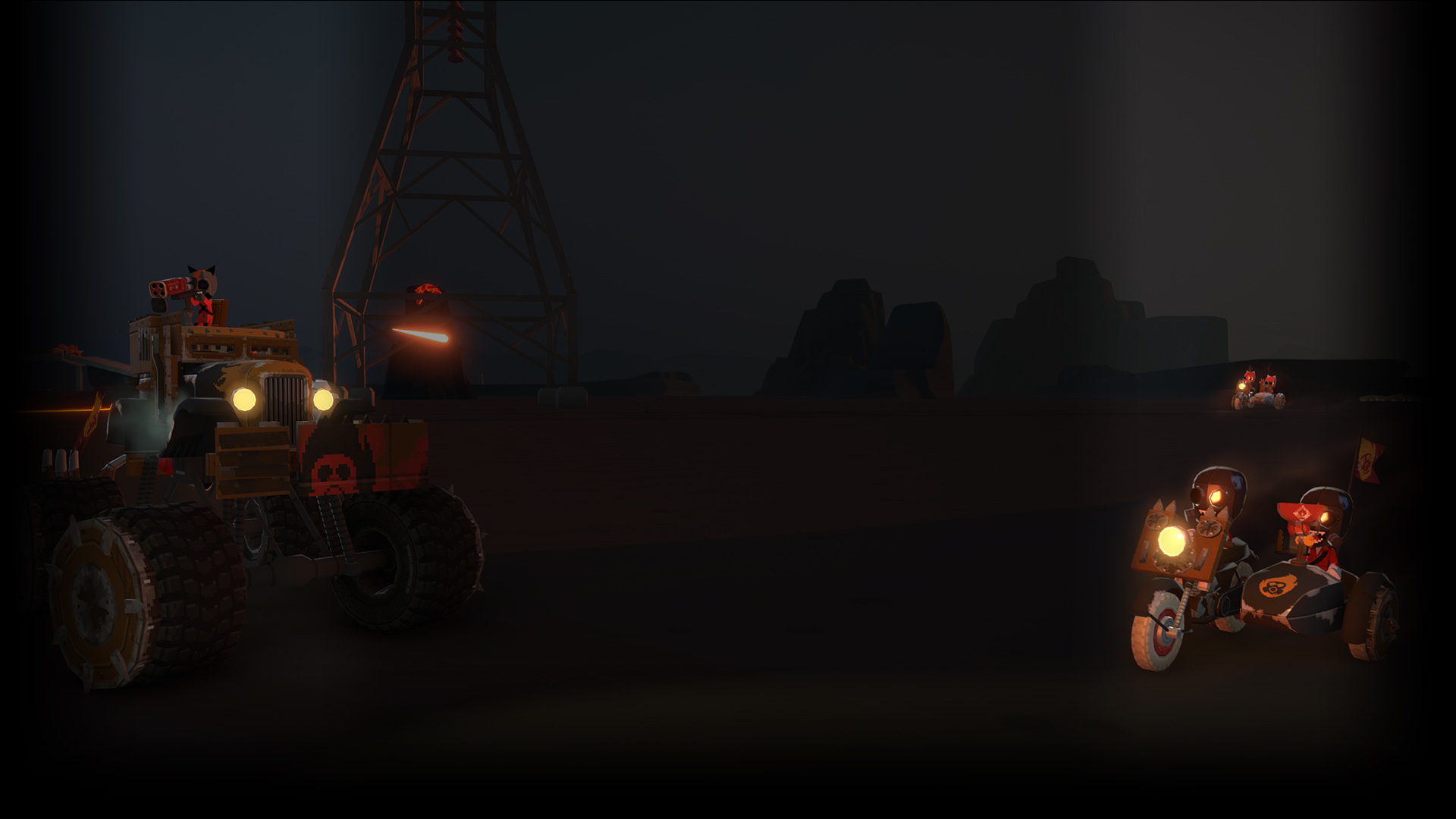 Combat will require you to multitask under pressure! While out on a mission, you must strategize and manage your crew members efficiently to man guns, repair your rig, heal injured crew mates and more. All whilst you drive and navigate environmental hazards and gigantic sandworms.