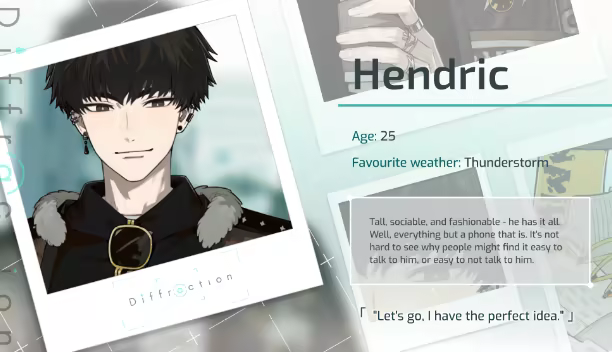 Diffraction, as a visual novel, features user decision and dialogue choices to influence game progression, alongside a variety of other features to enhance the storytelling: