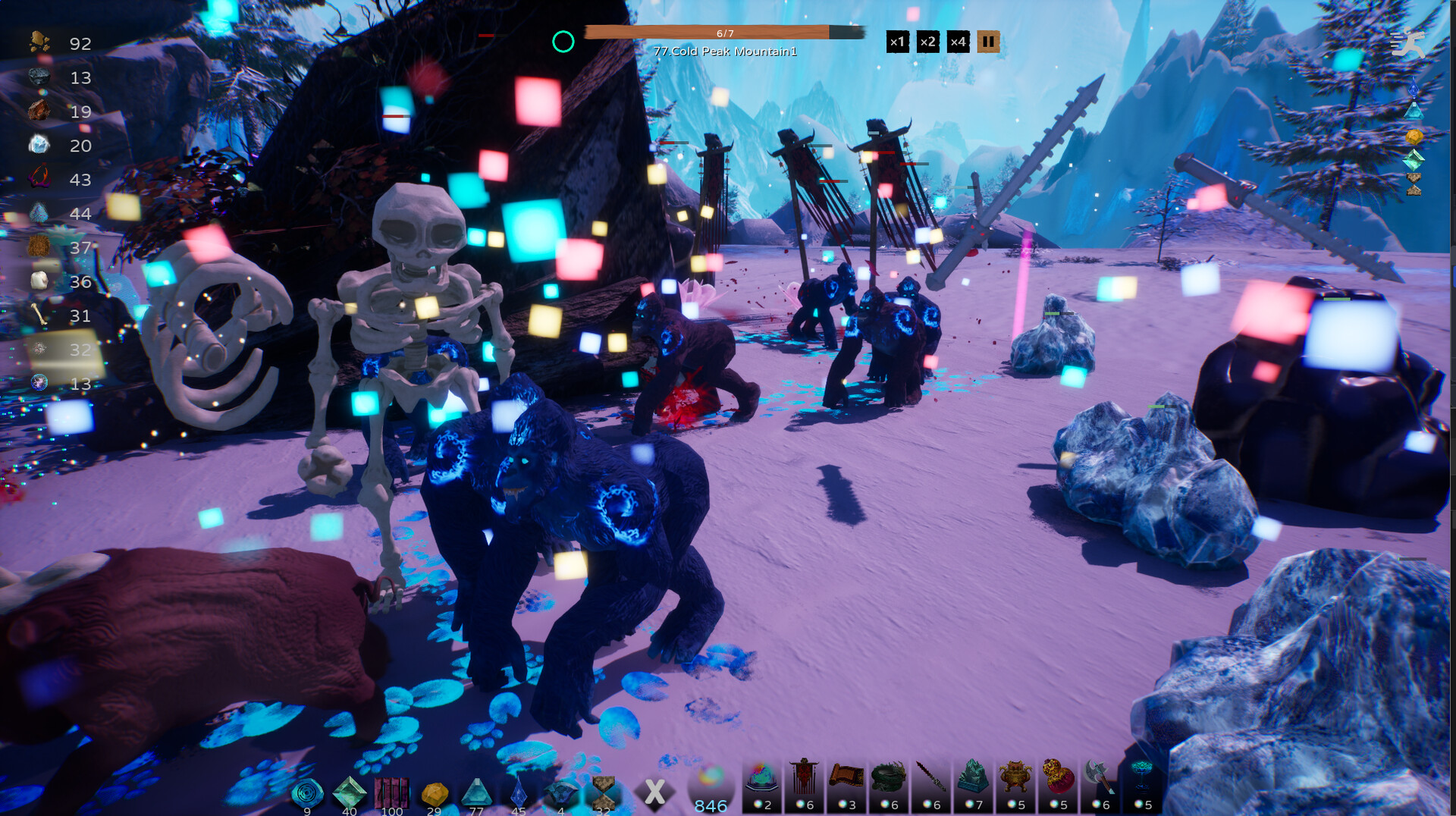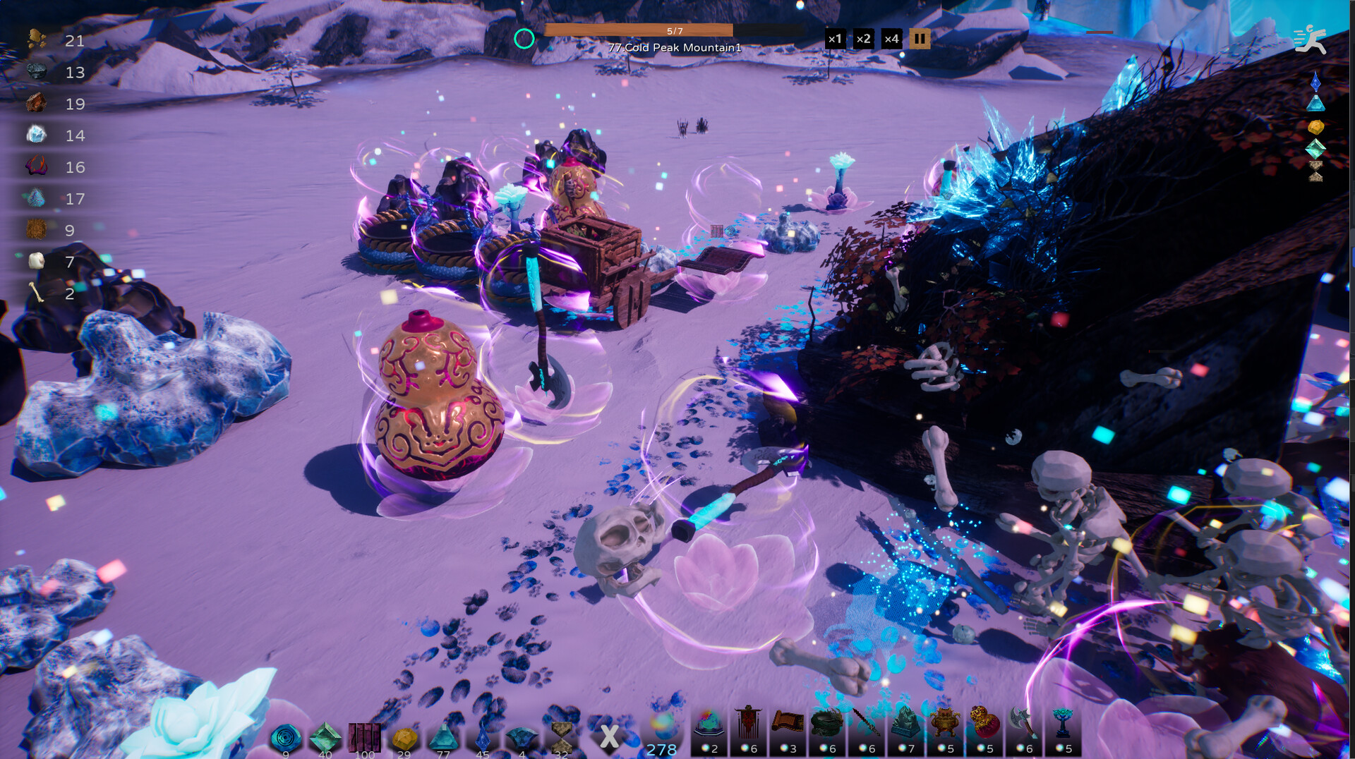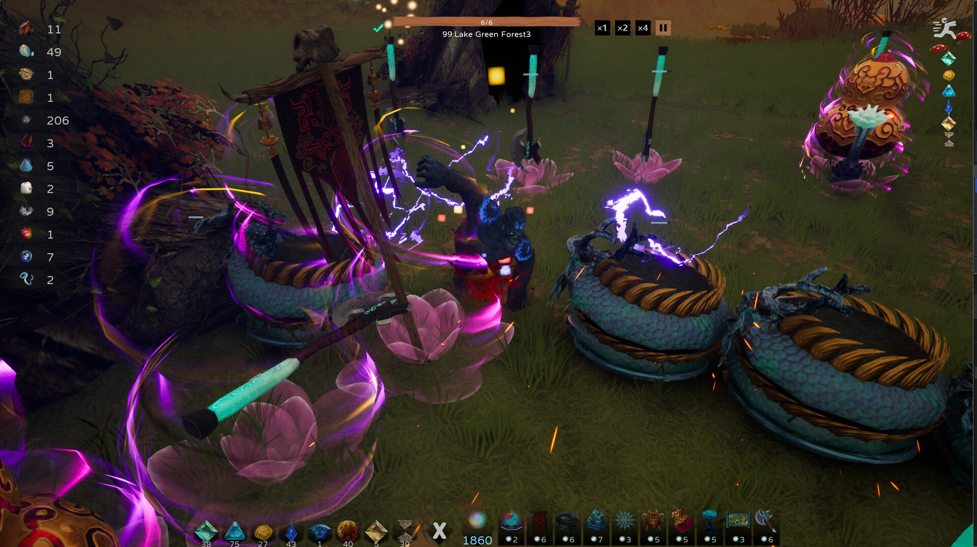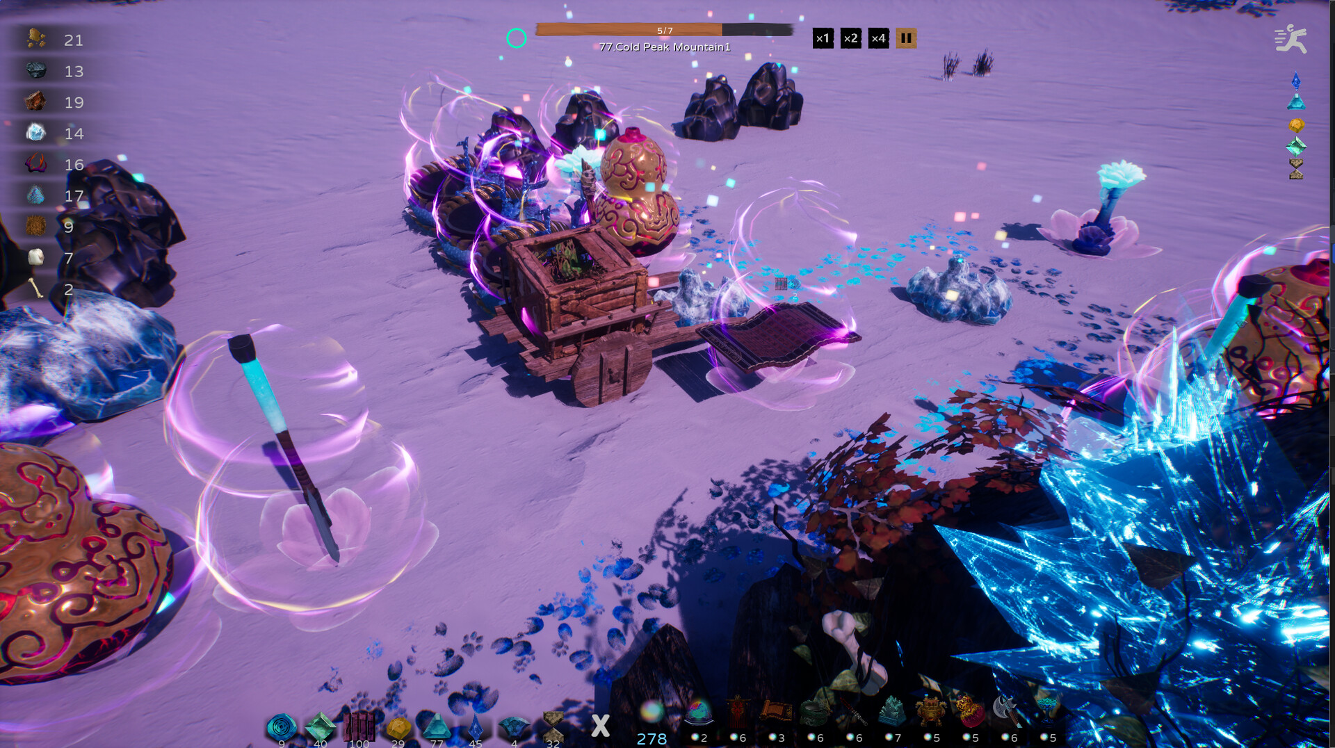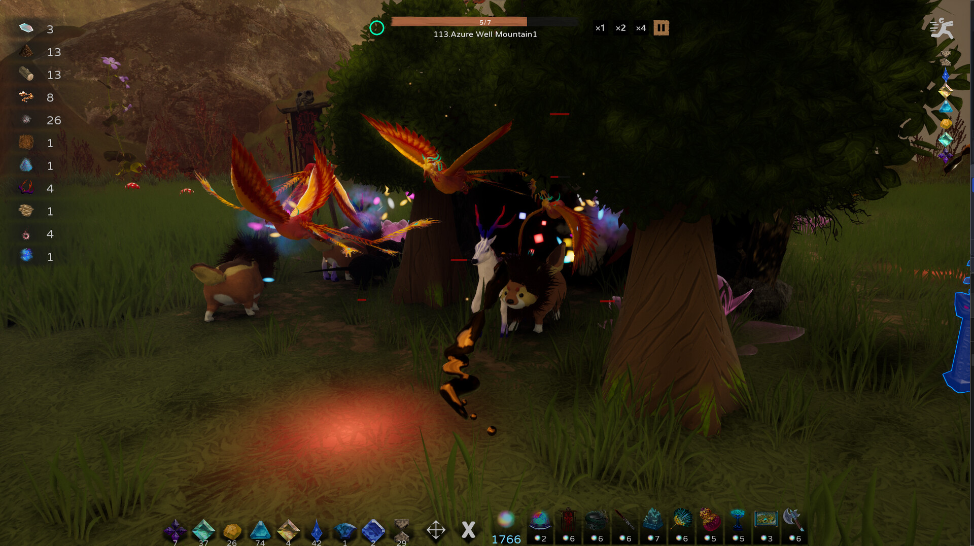 In the wilderness, LingQi is consumed to arrange Artifacts. While using Artifacts to defend against Monsters, one must also collect Spiritual Materials by mining different ores, trees, and other Spiritual Resources, which are used for artifact refining.
