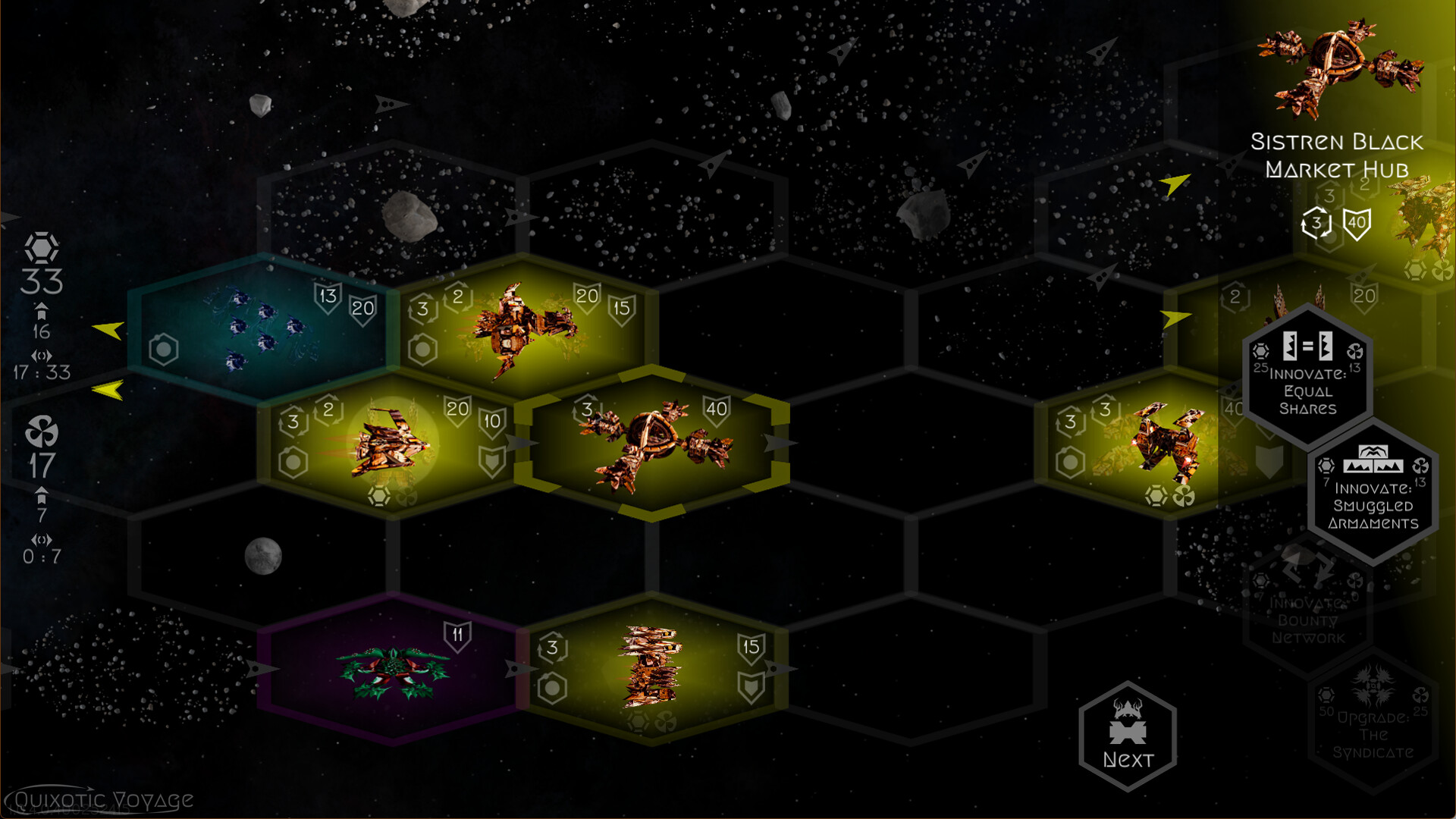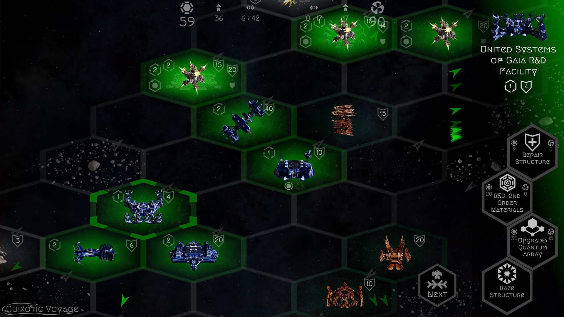 At the end of every round, all celestial bodies orbit around the sun, moving at different speeds and shuffling the positions of ships, structures, and resources. Ships can enter or leave orbit, giving them tactical advantage in positioning for future combat.