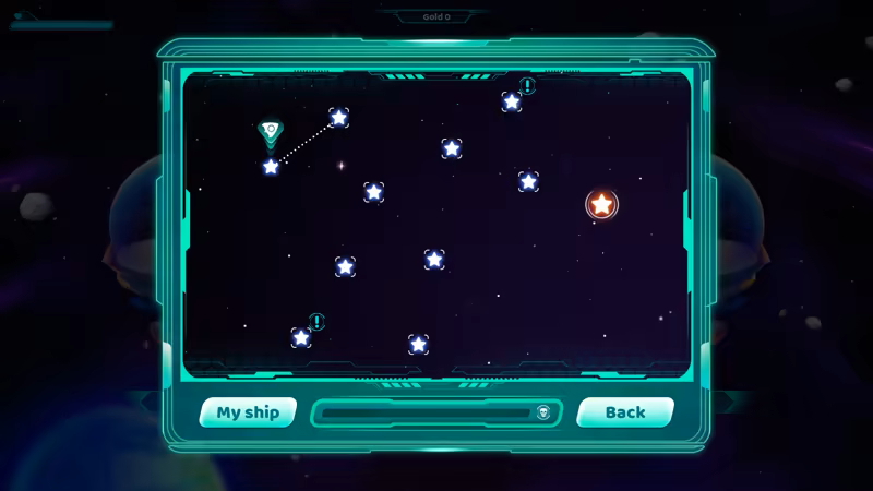 • The game is split into 4 stages. Each stage has a procedurally generated star system.