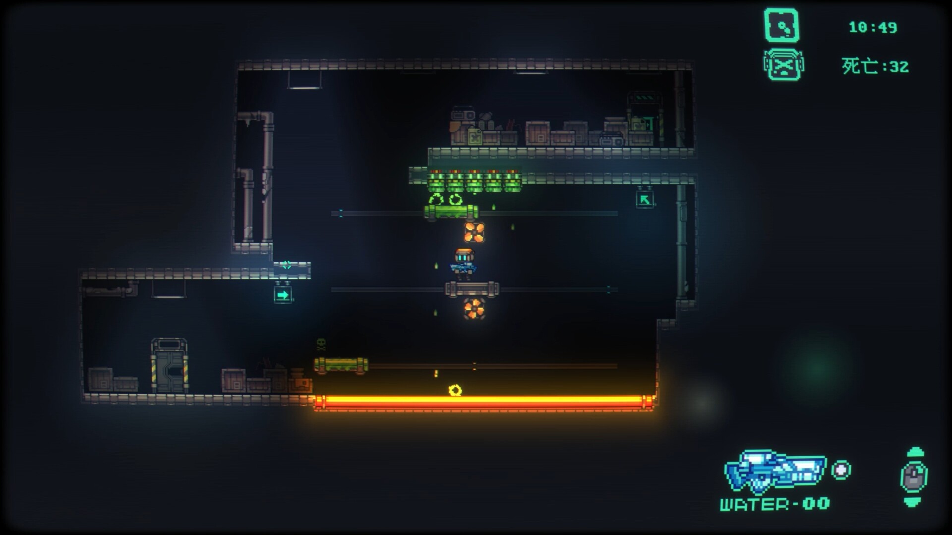 《ABYA:Paint Ball》is a challenging 2D platform action-shooter game. The robot ABYA awakens from a dormant pod, following the guidance of AI, wielding a specialized water gun to explore the complex and hazardous underworld for resources, enhance equipment, and open the central elevator.