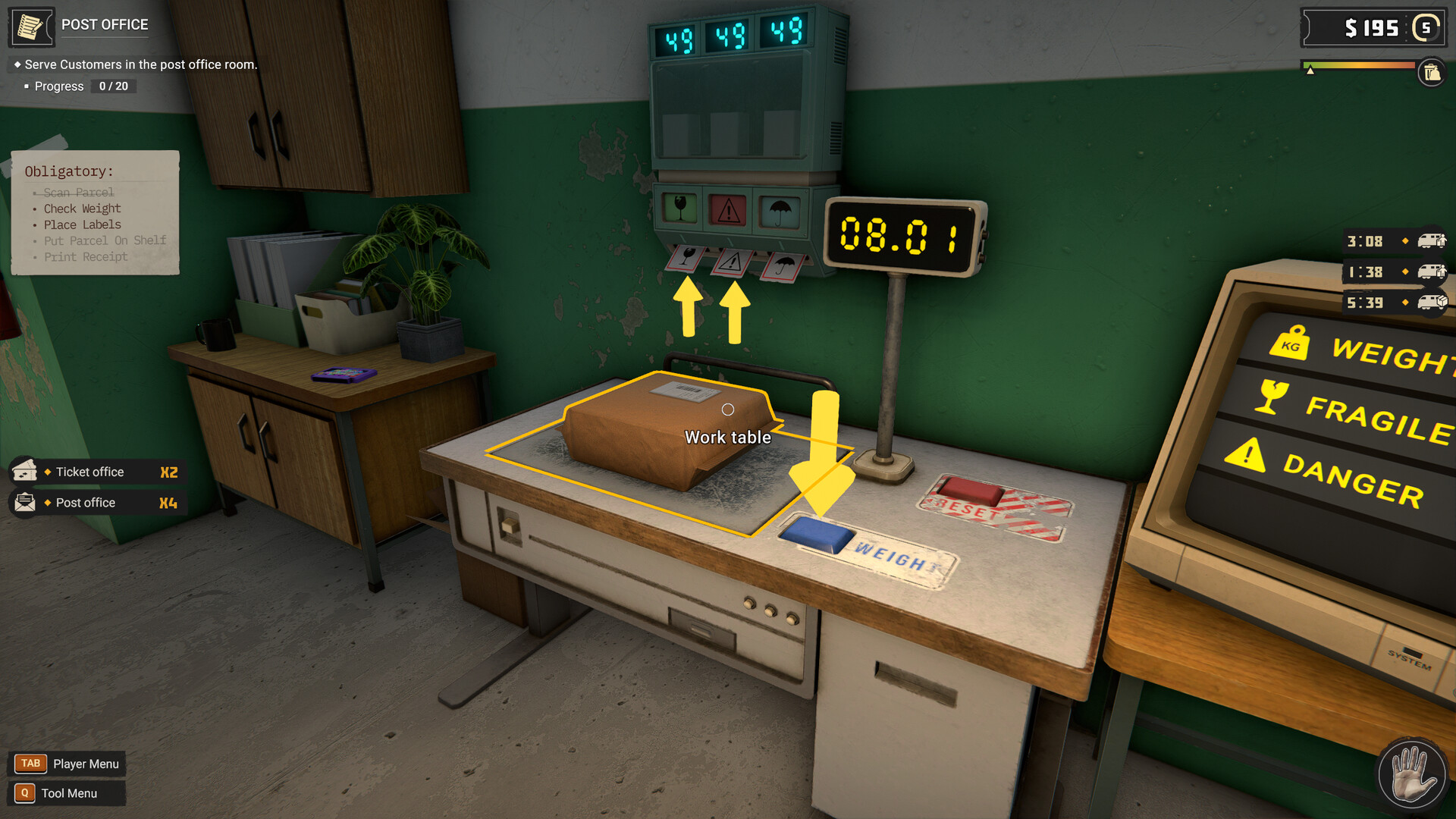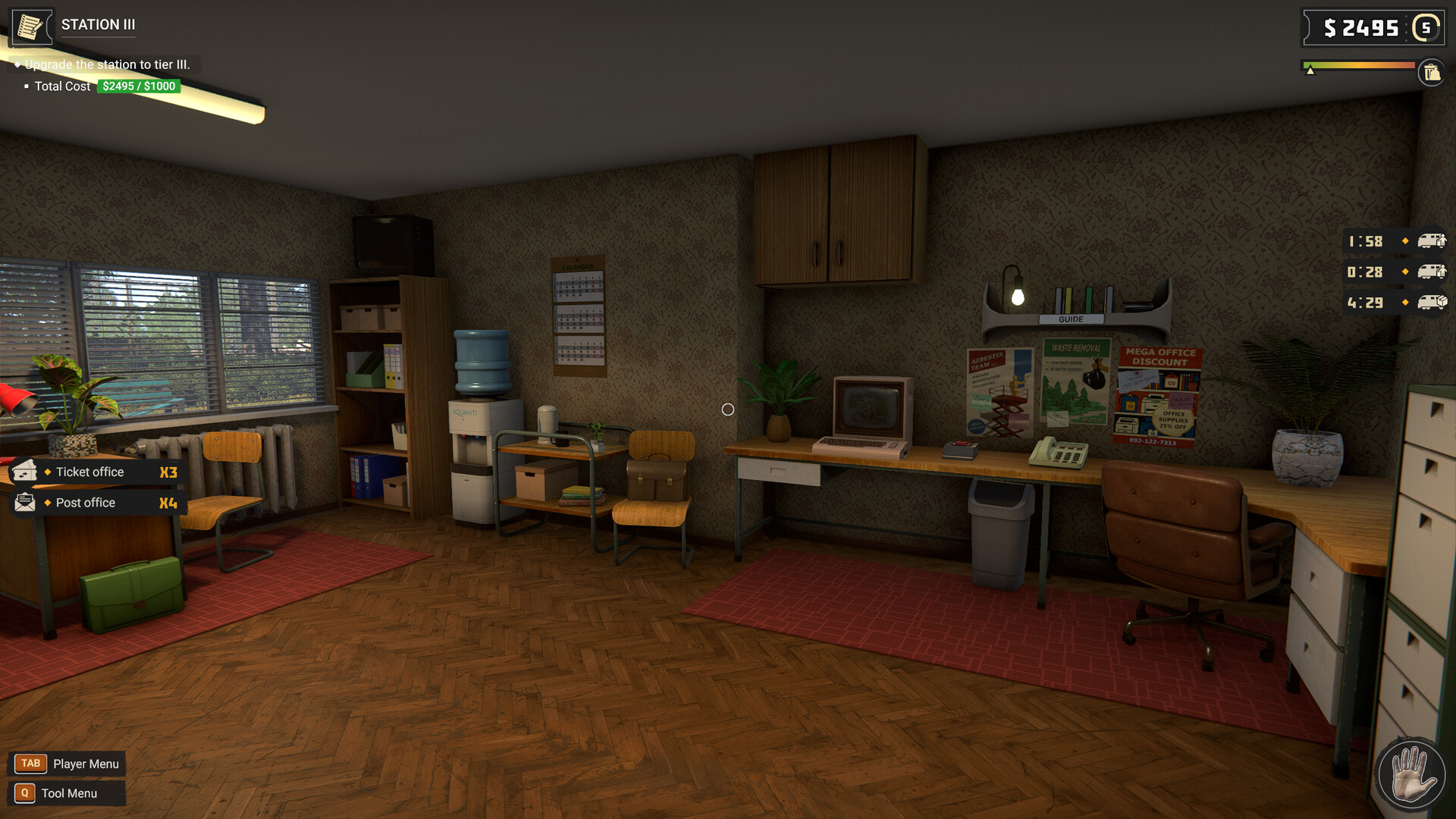 Manage - Remember that your resources are not infinite. You need to take care of your warehouse and regularly plan to order products for the store, vending machines and even things for your office.