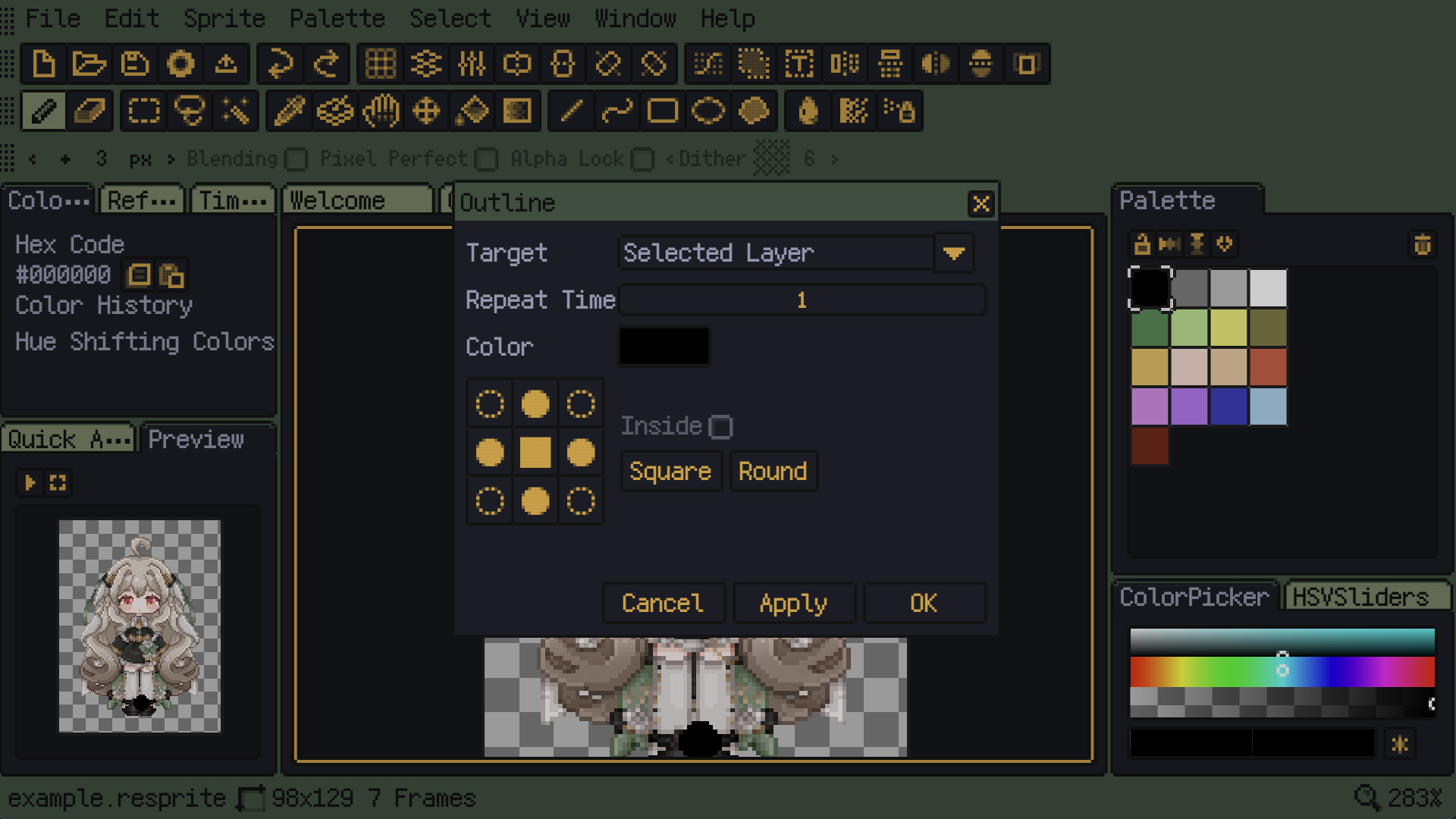 Resprite is a pixel art editor. You can use it to create game assets and animations. If you have used image editing software such as GIMP, PhotoShop, iDraw3, Aseprite, Pixelorama, etc., you can easily get started. In addition to the regular editing functions, Resprite has the following features:
