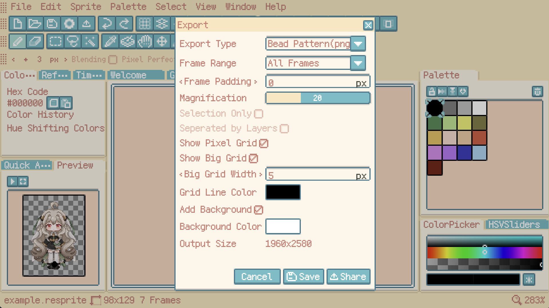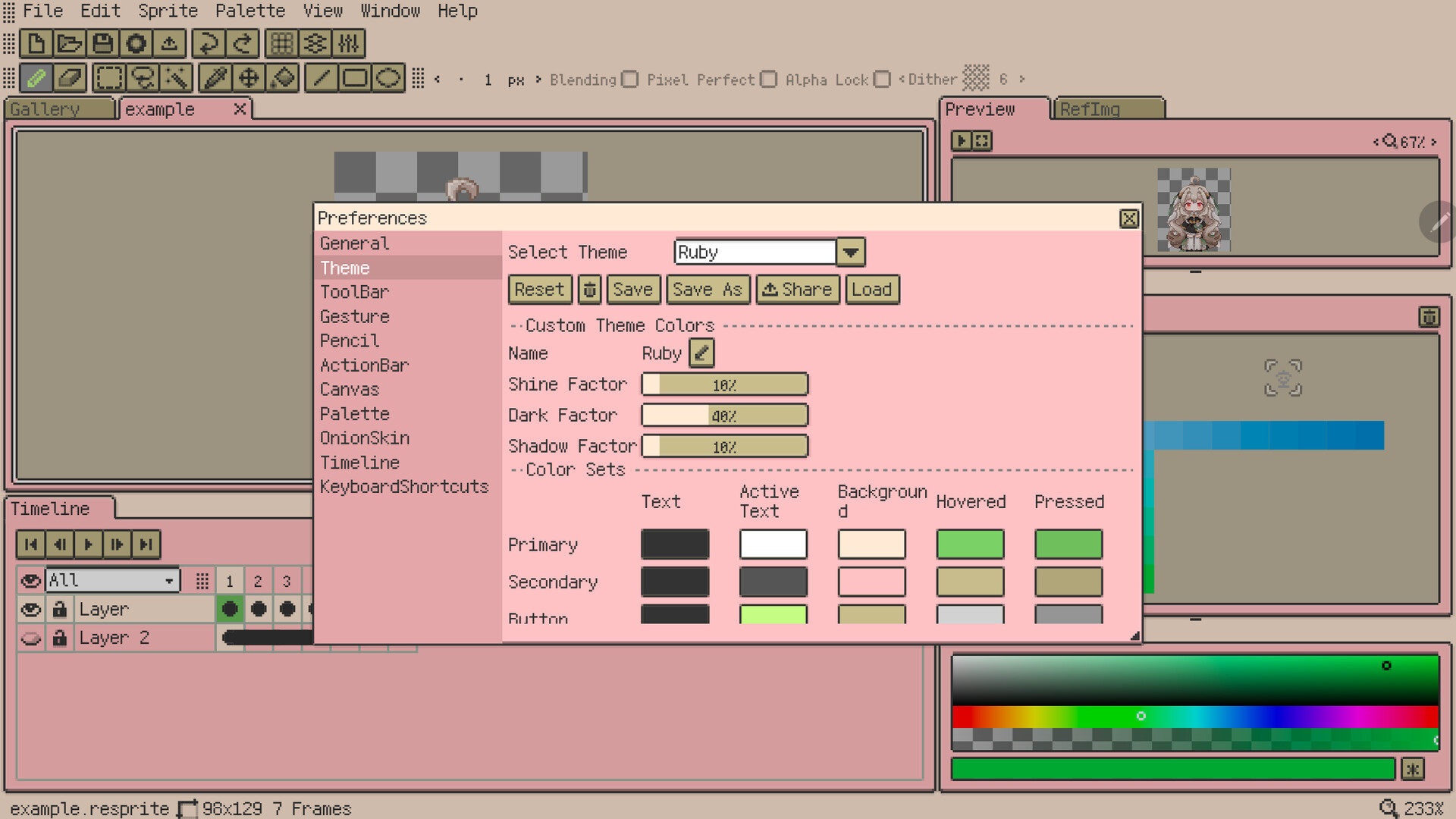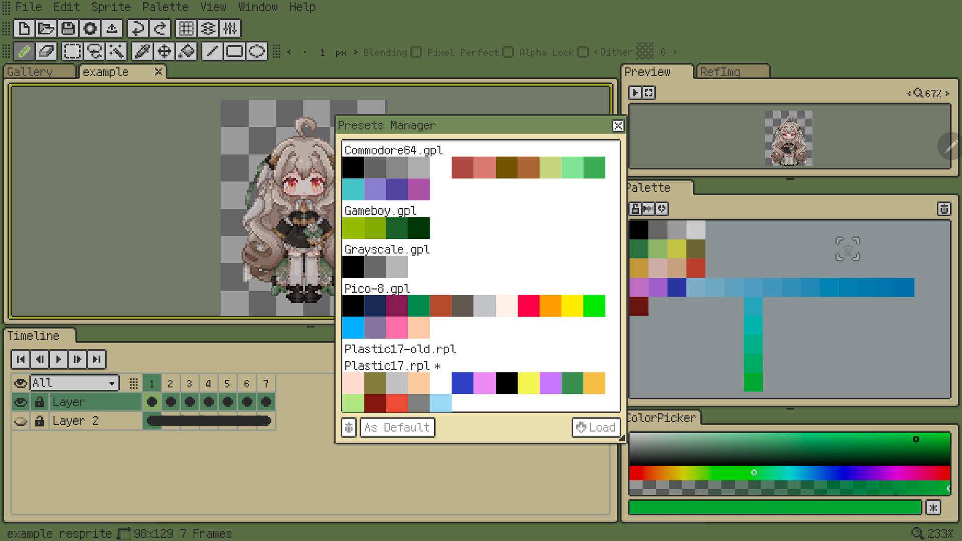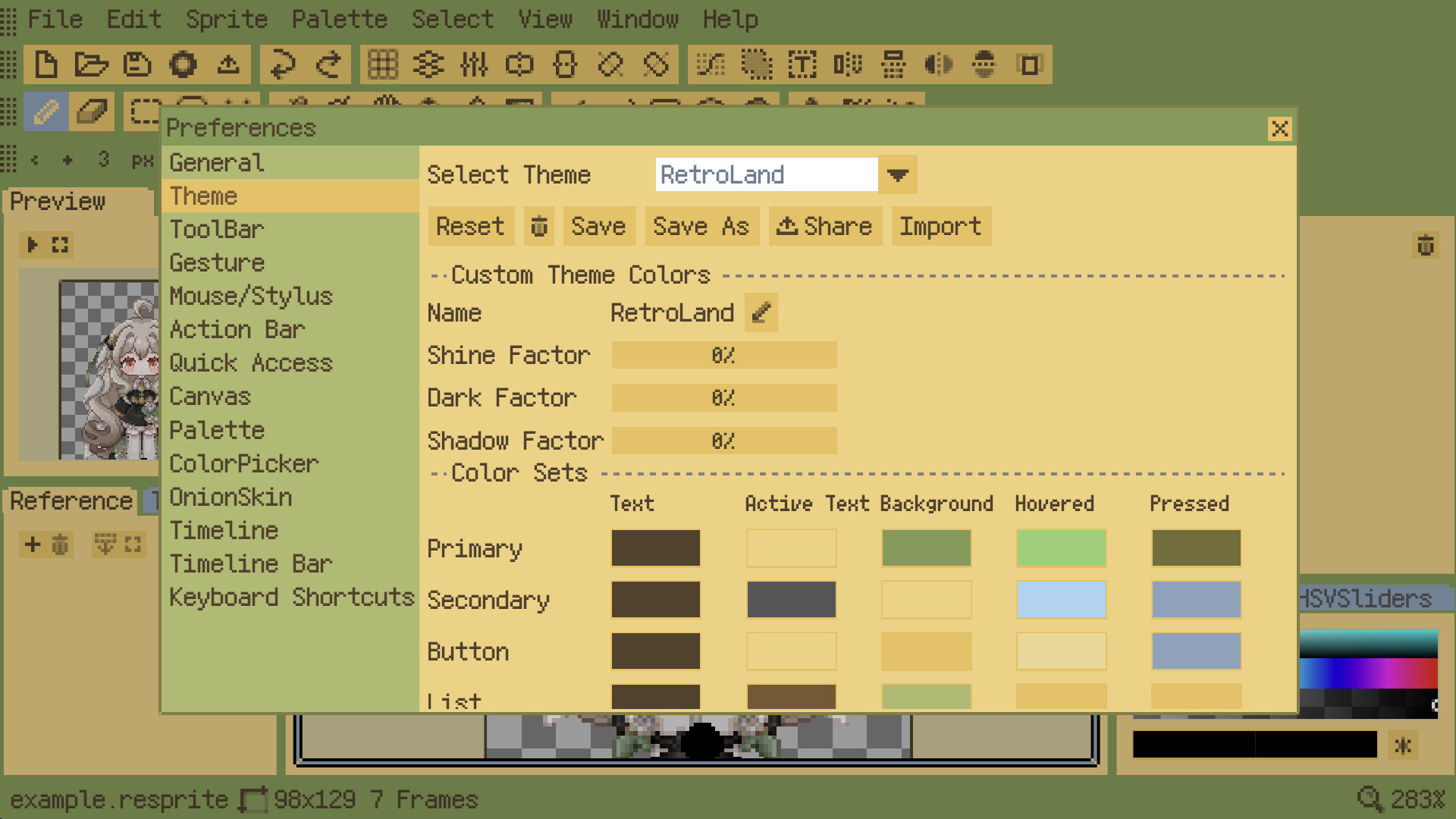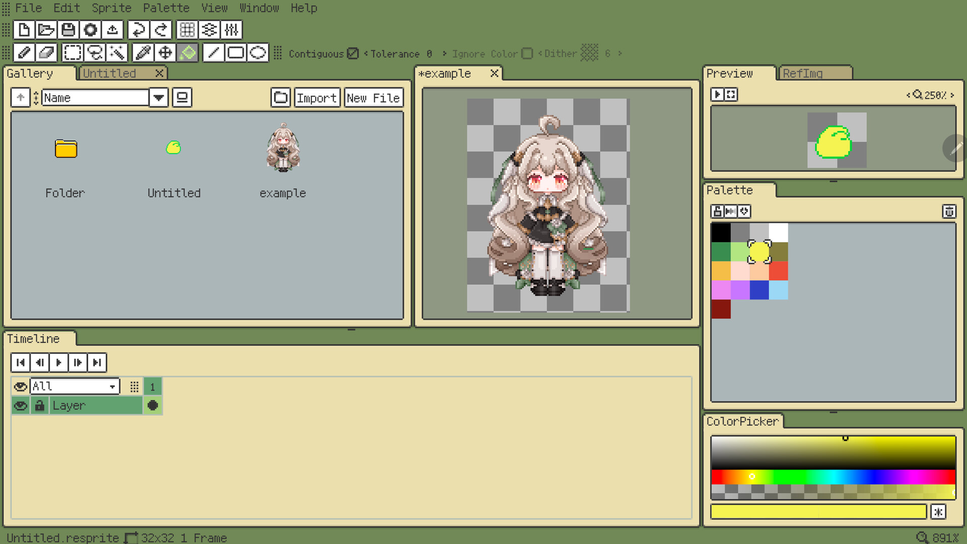 Resprite is a pixel art editor. You can use it to create pixel art, sprite animations, and art assets for pixel games. It supports new features such as flexible interface layout and clipping masks.