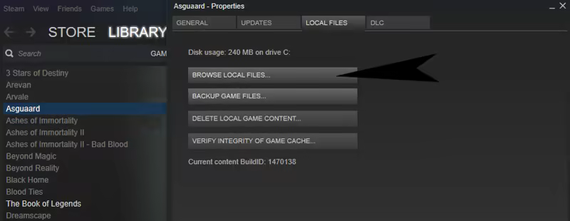 Or directly from the Steam Client, first right-click on the game, then select: