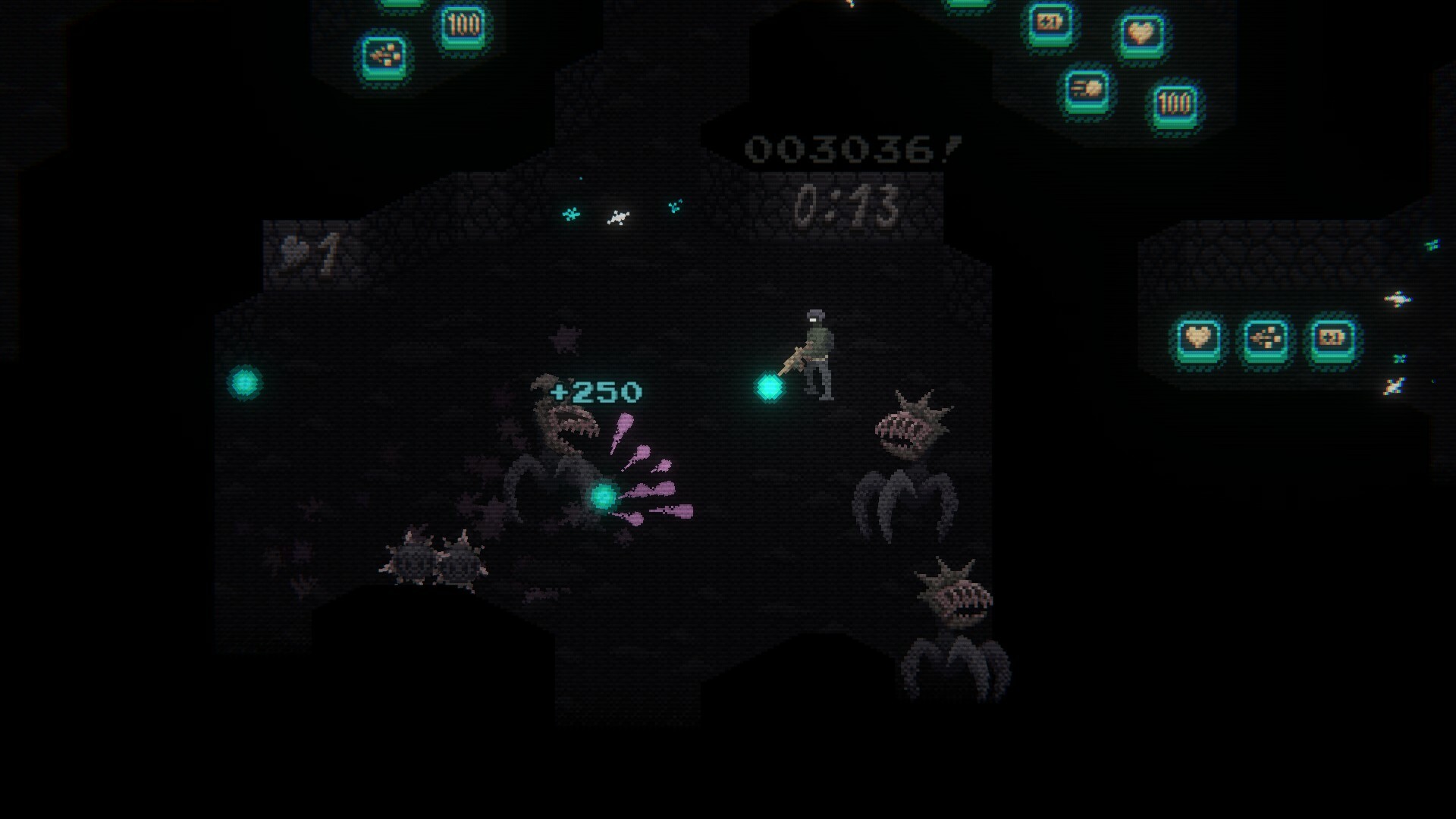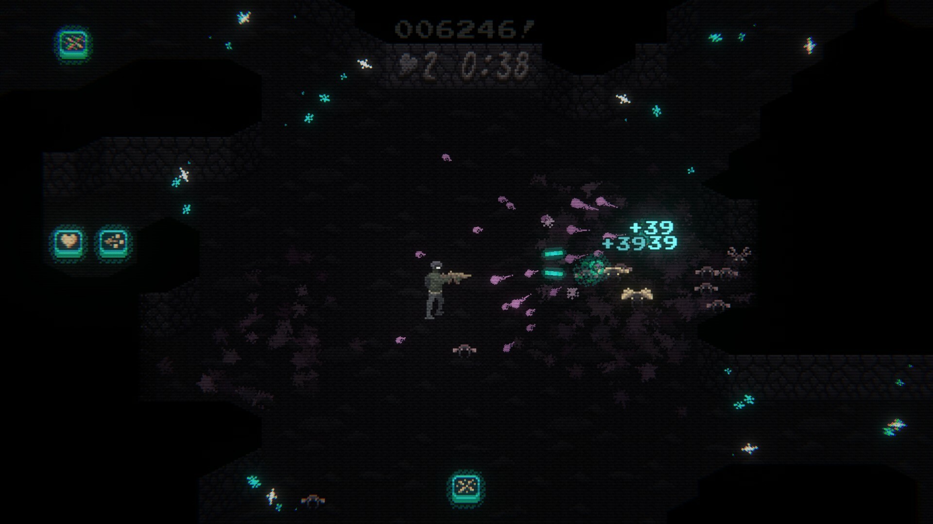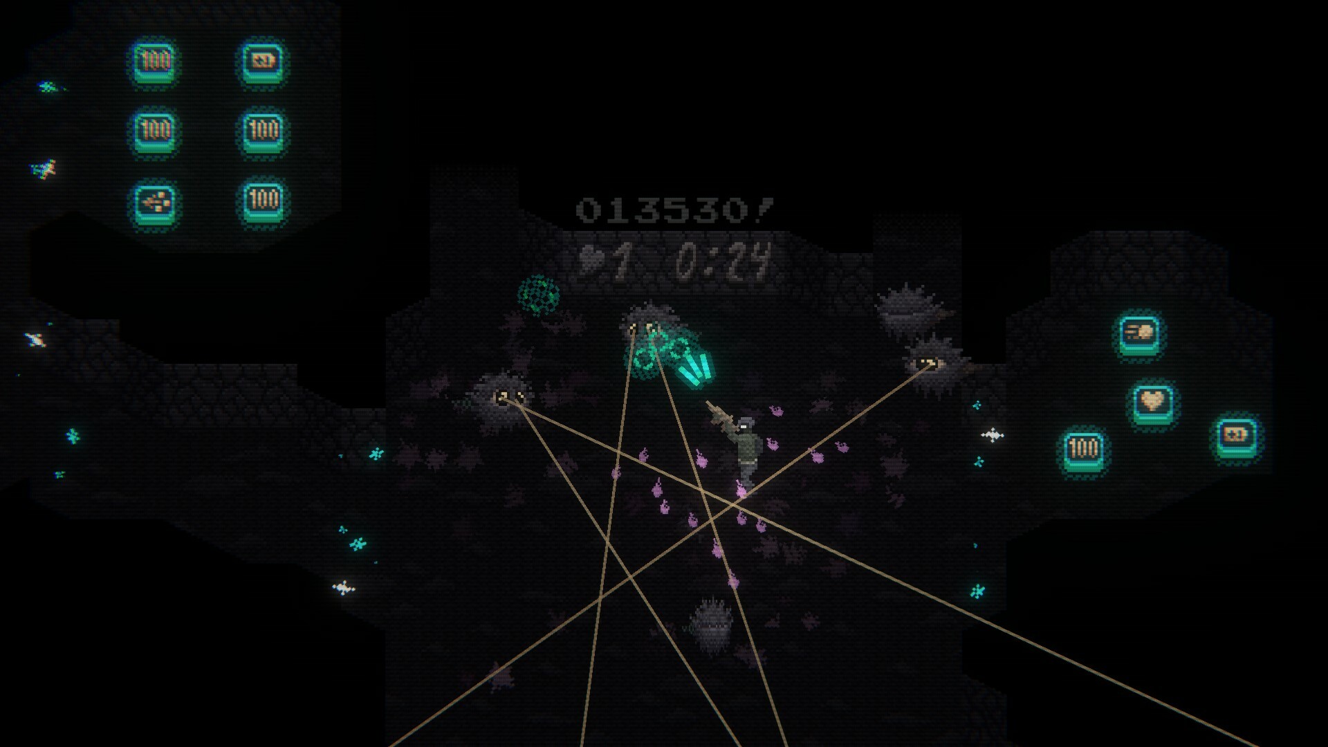 Gebruik intuïtieve twin-stick-besturingselementen om met vastberadenheid en snelheid door top-down-omgevingen te bewegen terwijl je alle inkomende bedreigingen neerschiet. Verzamel power-ups om je wapens direct te upgraden! Hoe sneller je vijanden uitschakelt, hoe hoger je score zal stijgen en hoe hoger je stijgt op het scorebord in de overlevingsmodus. Hoe lang kun jij het gevecht volhouden?