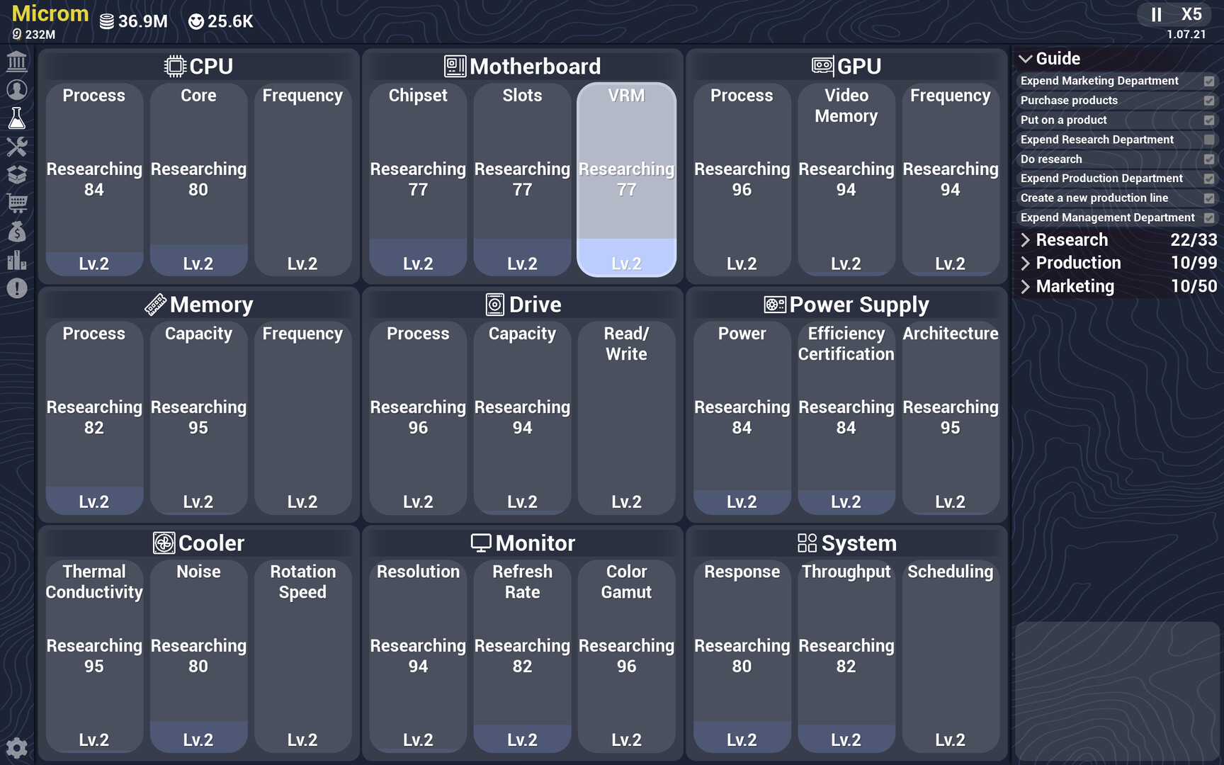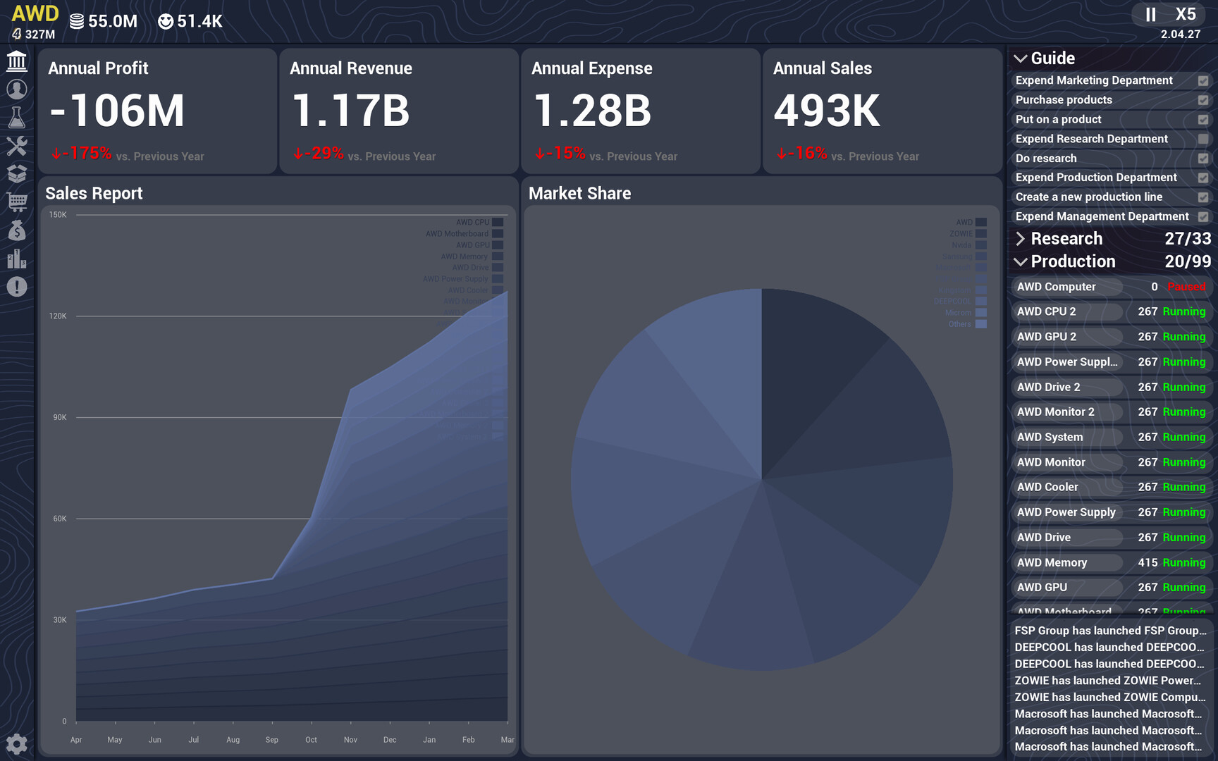 3.Developing products: Choose the right components to build computers, set prices, and compete in the market.