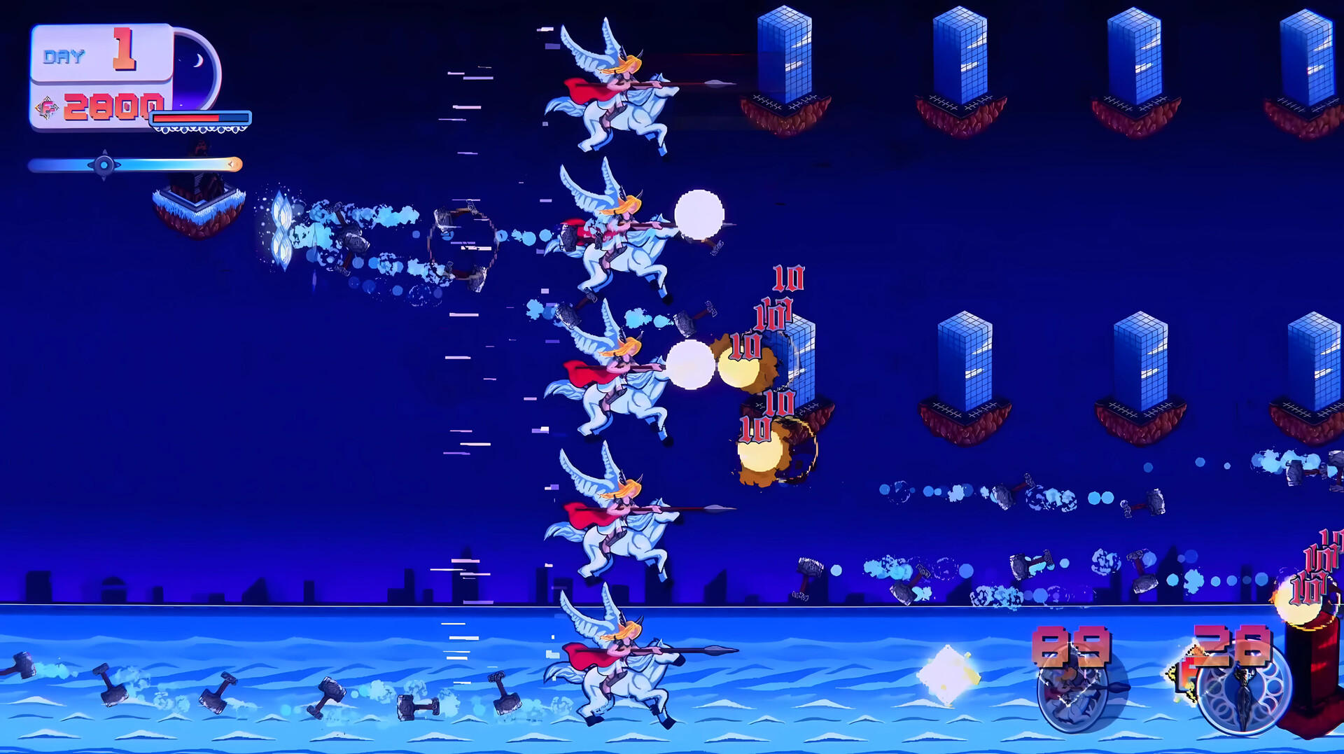 Temples vs Buildings is a roguelike with shoot'em up elements. The player will control flying temples of many cultures and fight against a vast array of flying buildings.