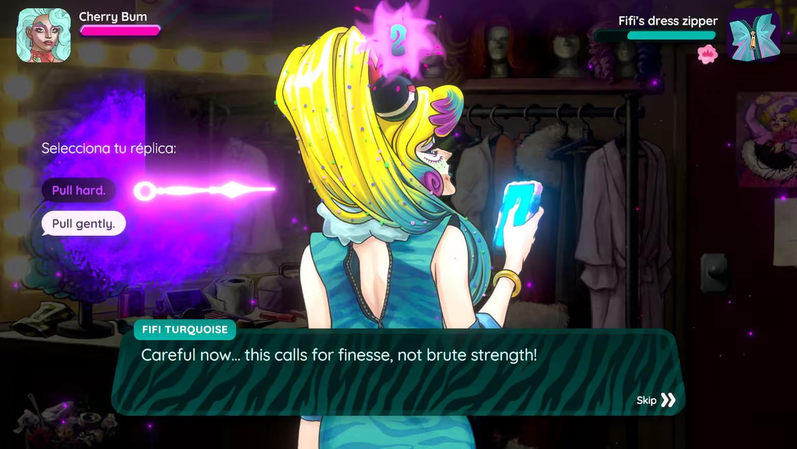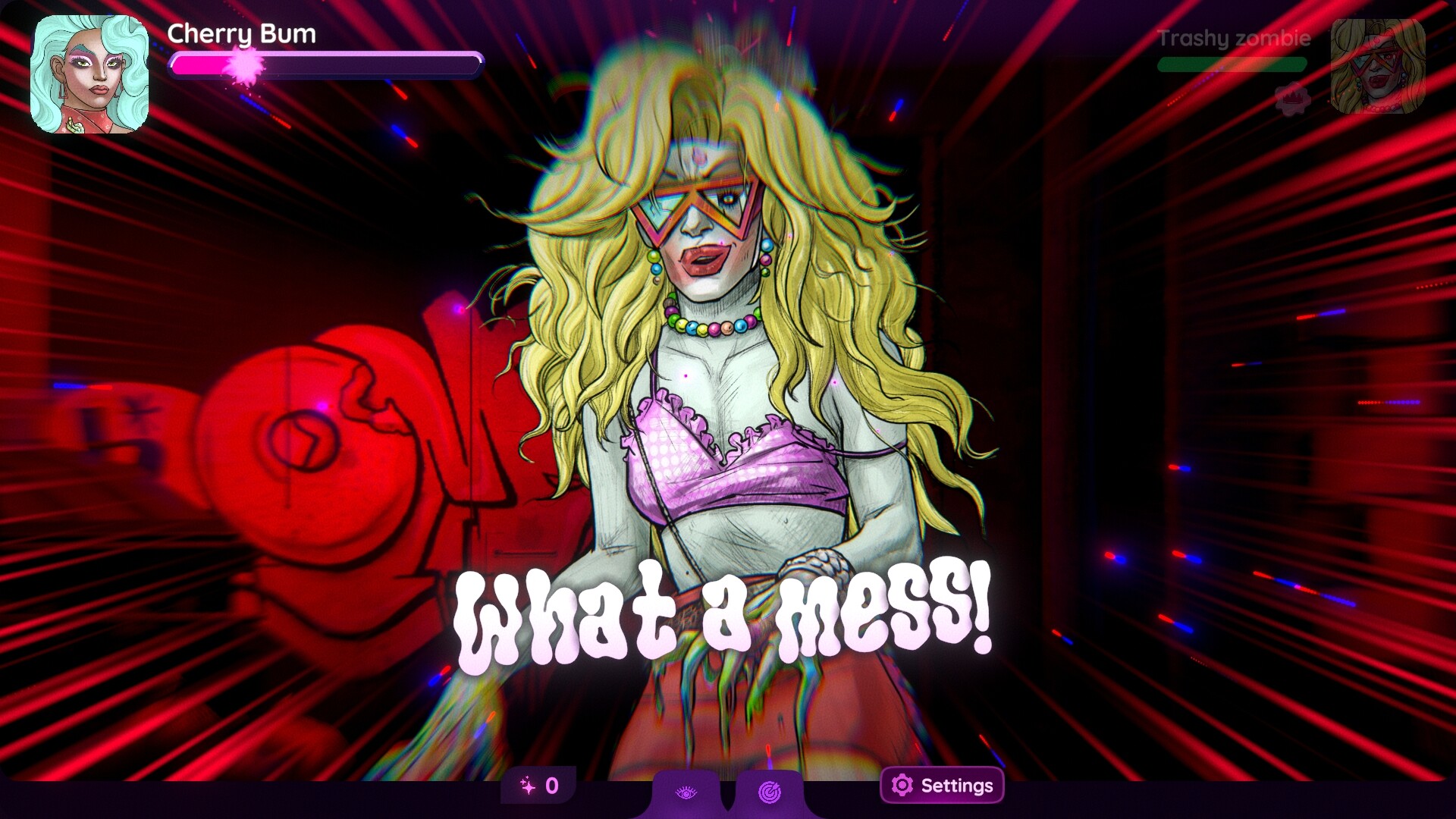 In a word full of zombies and, of course, drag queens, you can trust no one. You better investigate and get all the clues and secrets from the characters. You will unlock their traits and make it easier to progress through the story... or you can just go ahead and face whatever comes your way!