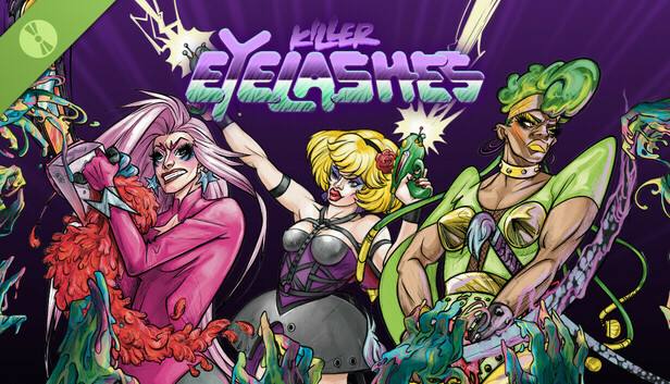 Killer Eyelashes contains stylized violence, strong language, suggestive content, and references to alcohol use. The game also explores themes related to gender identity and self-expression. Some dialogue and situations may be considered sensitive or mature. All content is presented in a fictional and stylized context intended for adult audiences.