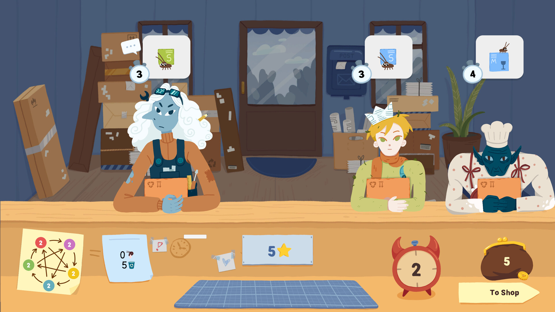 Together with your trusty sidekick — a cockroach named Mino — you’ll teleport letters and packages using enchanted polyomino stamps.
