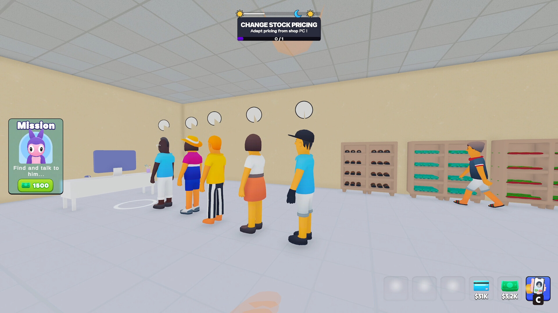 In Mall Control, you begin broke in a shady hideout, staring at the glowing lights of a shopping mall that could one day be yours. Work your way up by buying your first shop, stocking it with just enough products to attract curious customers… and maybe bending a few rules along the way.