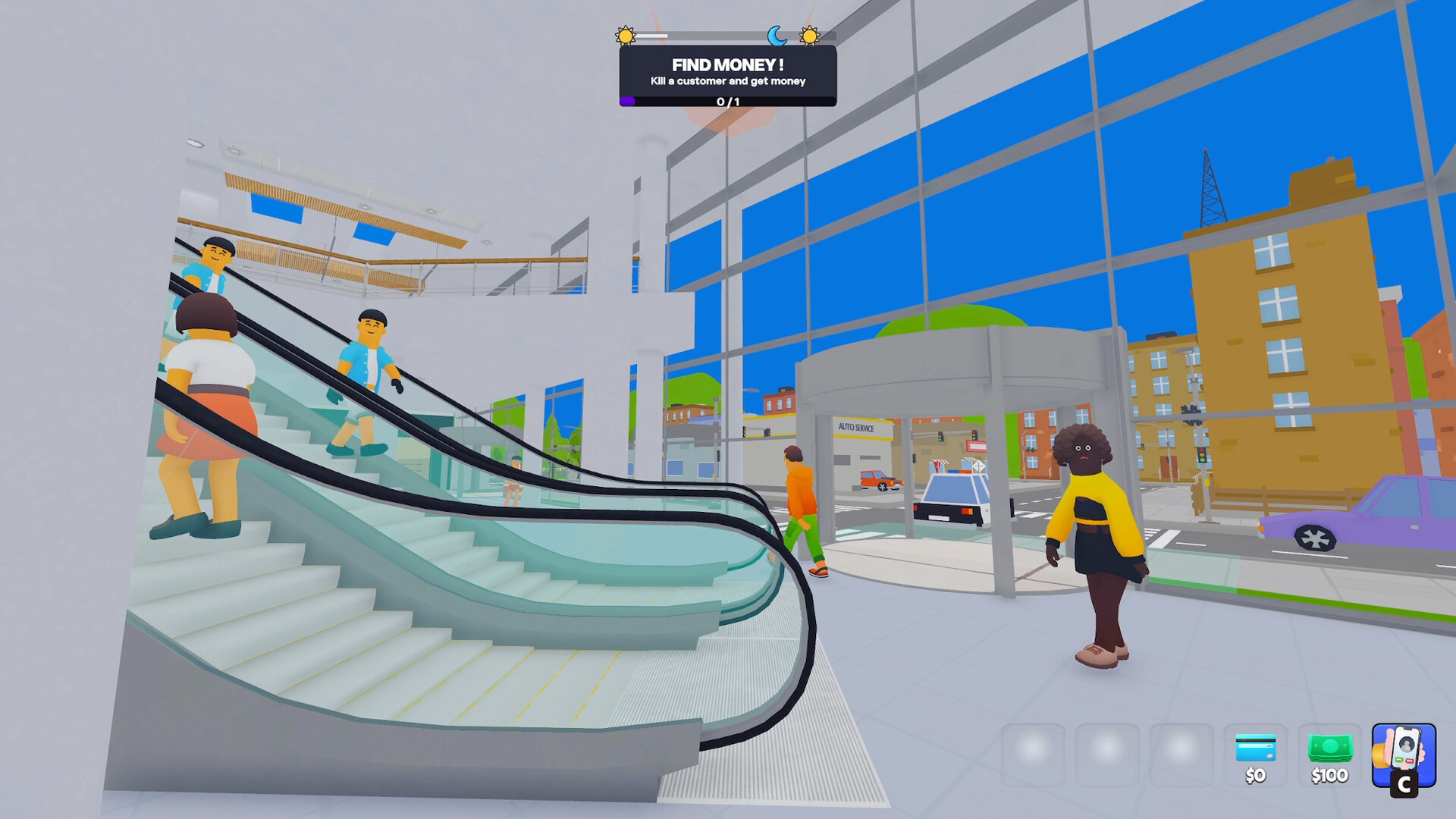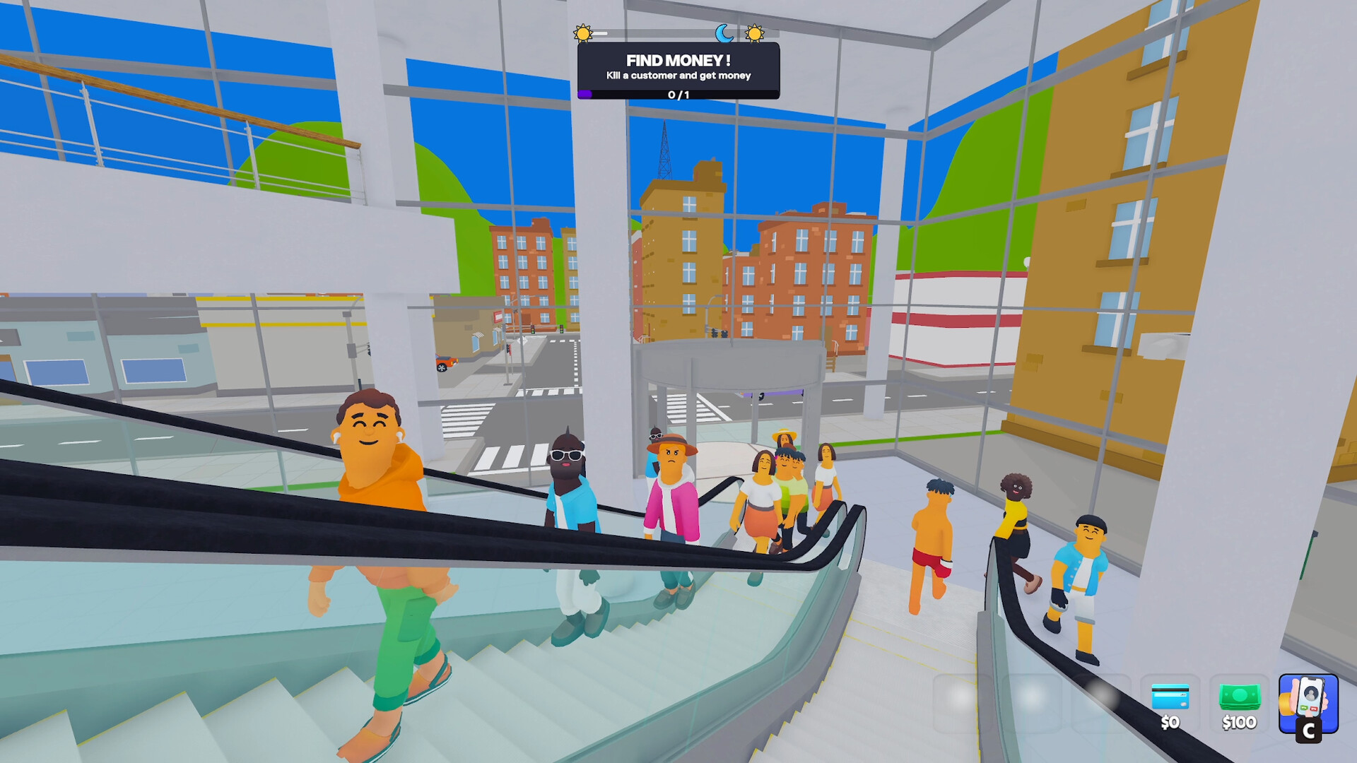 In this demo: Make it to your first shop and customers. In the full game: Build, expand, hack rivals, and take over the entire mall with friends.