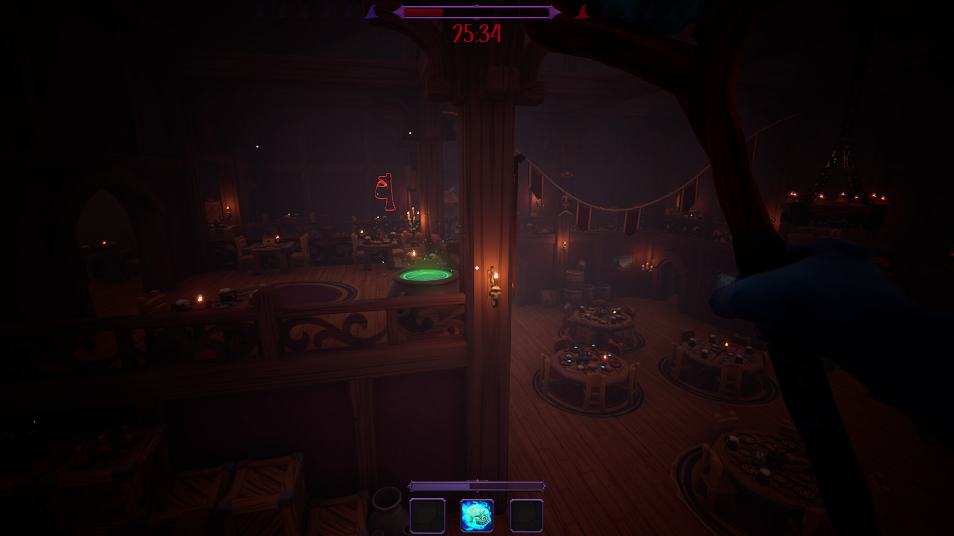 The Blood Moon begins when there are 50 seconds of silence. During this time, the Wizards' vision is restricted, and their heartbeats become audible to the Hunters. This makes the Wizards easy targets. Hiding is useless in this phase; Wizards must fight to survive. During the Blood Moon, magic books and potions disappear completely and do not return until the Blood Moon ends.