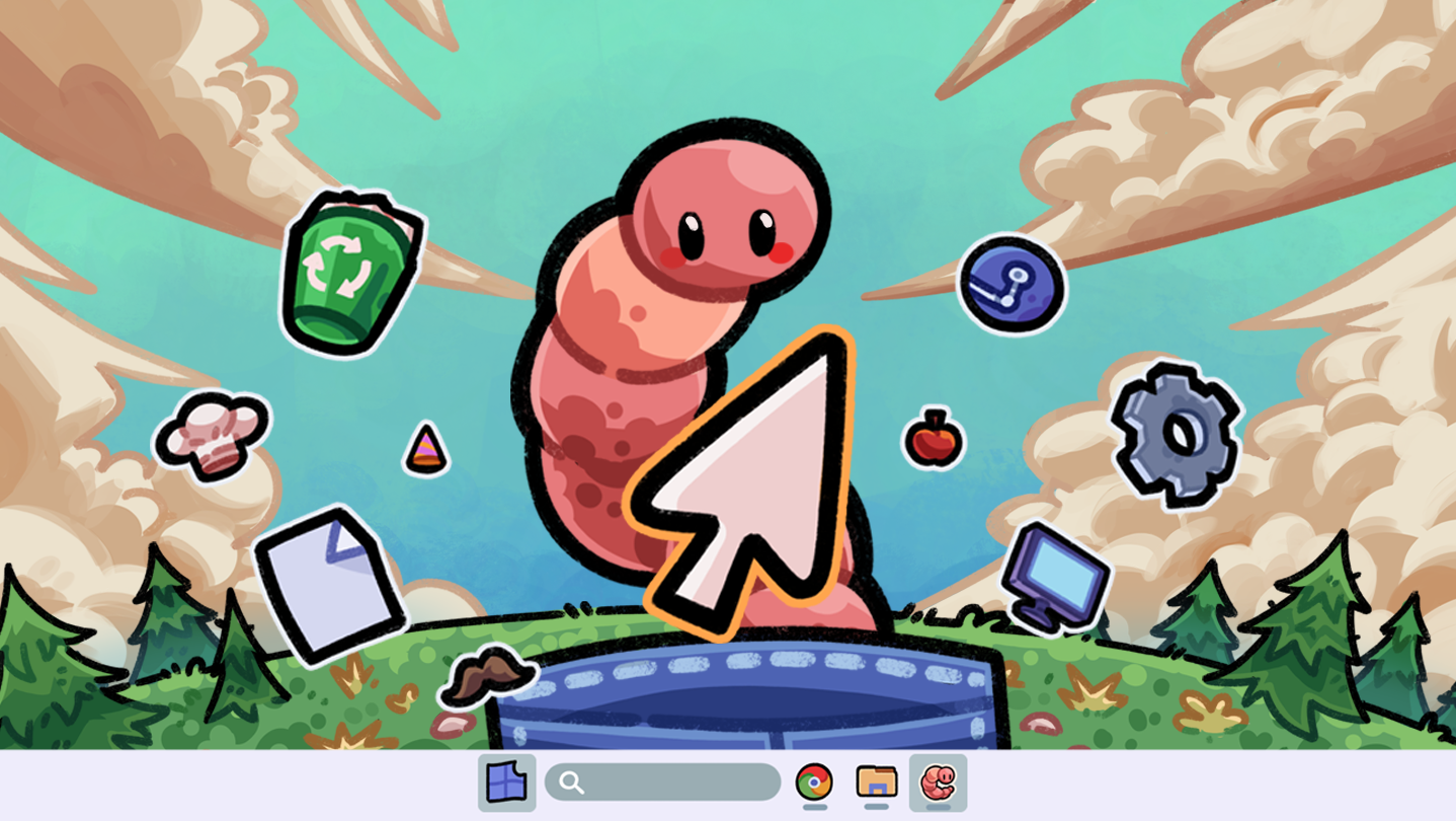 As you use your PC, you earn points by typing and clicking. Spend those points on item drops to unlock new hats and skins. Make your worm cute, silly, stylish, or totally cursed – it is up to you.