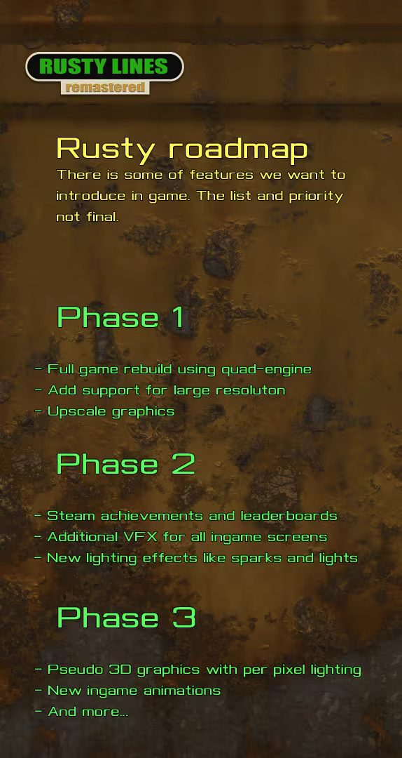 「We plan to add a lot of tweaks into the game like fullscreen support, Steam achievements, global leaderboards, improved graphics and effects, perhaps some music... This can be changed over time with support of community.」