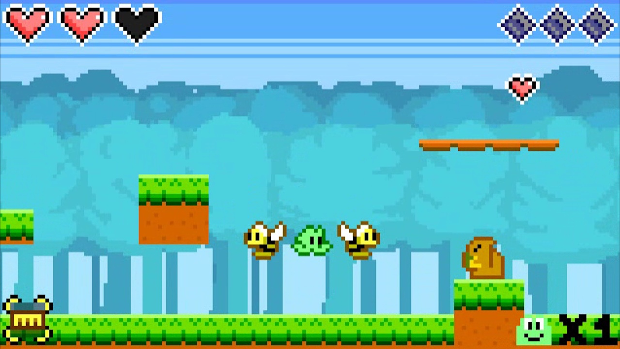 A cute and quirky old-school adventure platformer about a Frog named Hoppy searching for his frog friend Jumpy. Features a large variety of gimmicks, enemies, obstacles. Unique and challenging boss fights. Equip charms to alter your play style. It has hats.